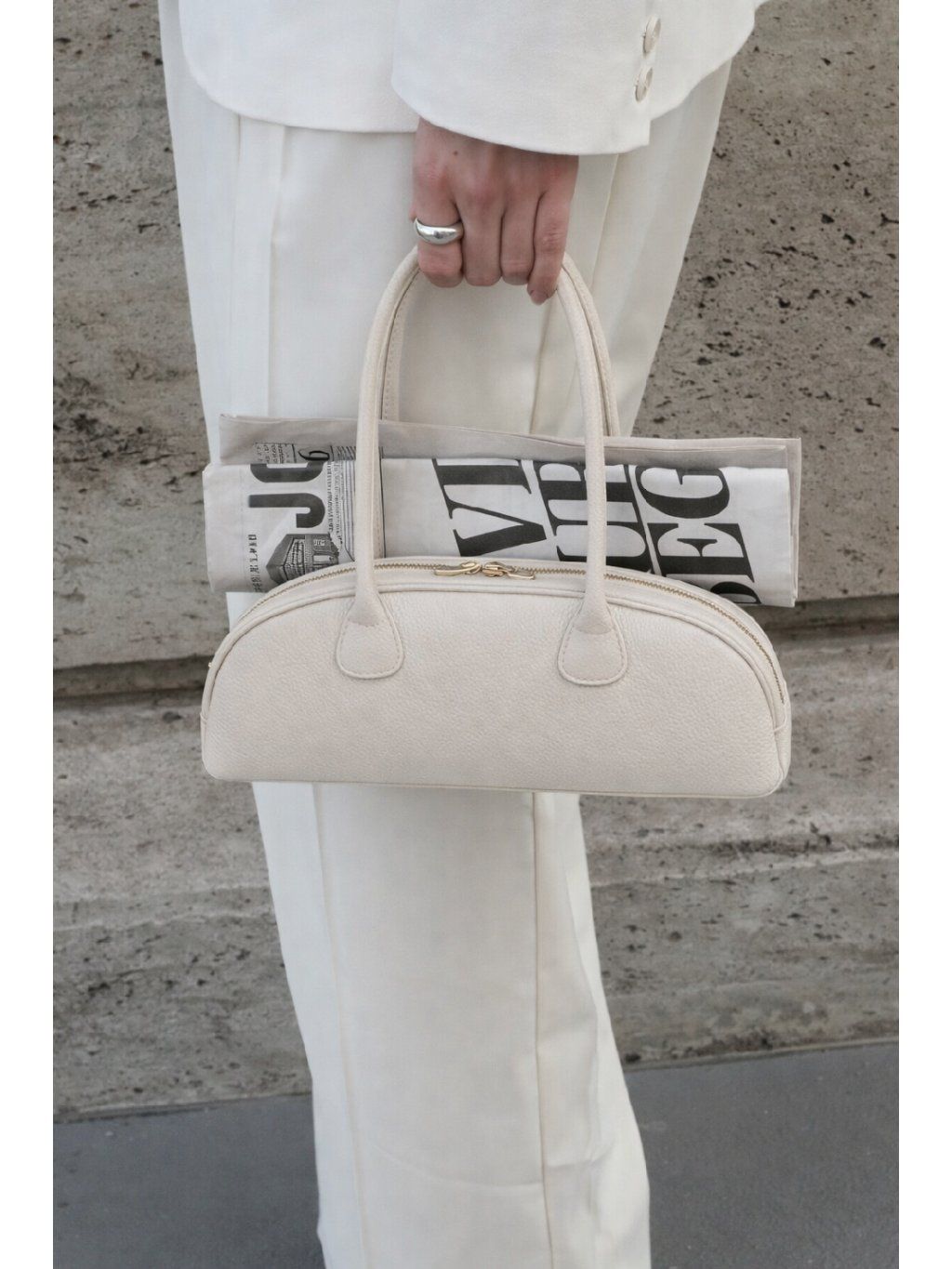 Trendová bowling kabelka na rameno alebo do ruky s vyssim putkom. Kabelka nemá crossbody pútko. Ma dvojitý zips a vnutro je vybavene jednym malym priečinkom a jednym priečinkom na zips.