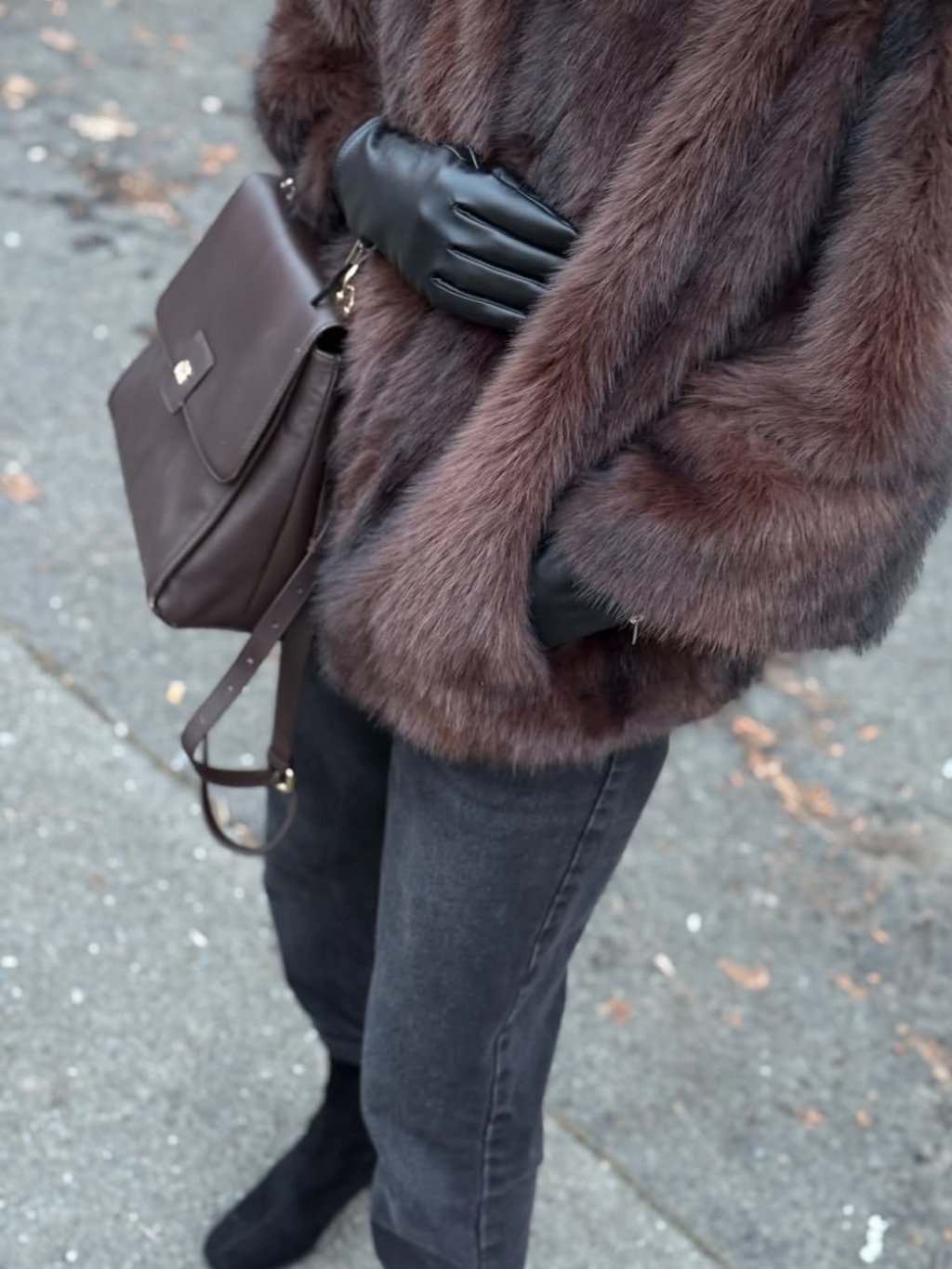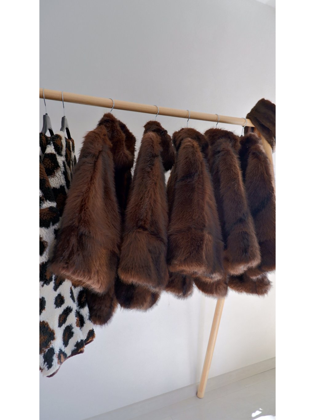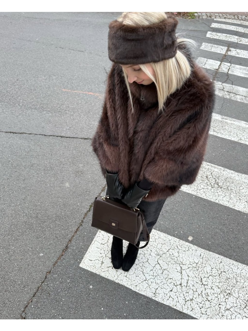 Nadherny kozuvh s vyvysenym golierom. Zapinanie na zips. Ma vrecka. Kozuch ma 3/4 rukavy. Idealne kombinovat s dlhymi rukavicami a outfit posobi elegantne a stylovo. Kozuch je kvalitne prepracovany a bol sity v atelieri vo Francuzsku (vid visacka). Je vhodne si dat pod neho hrubsi svetrik.