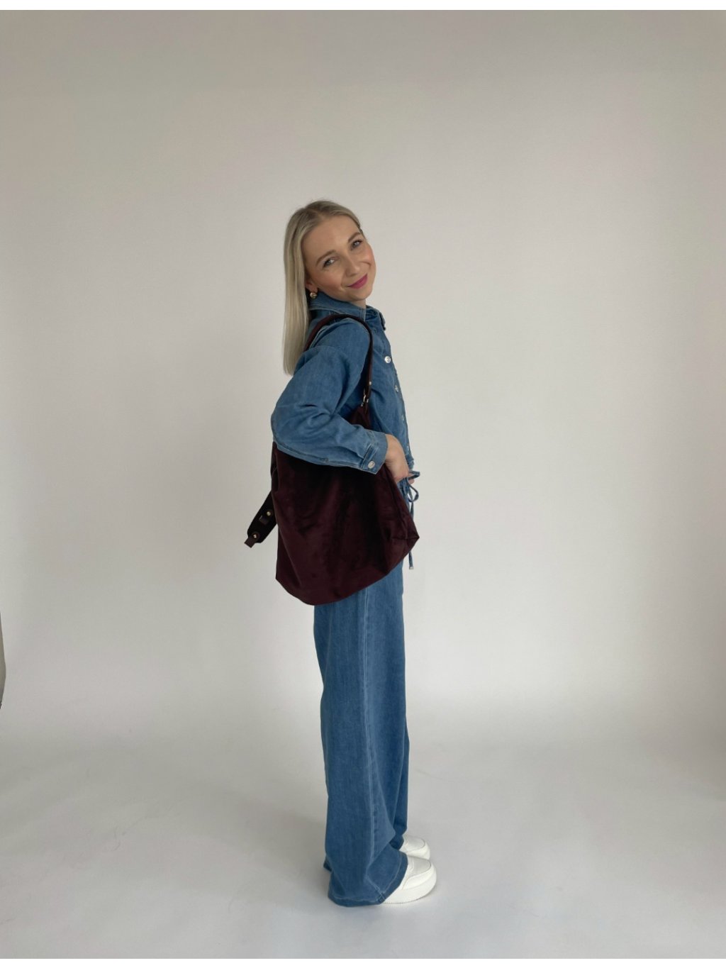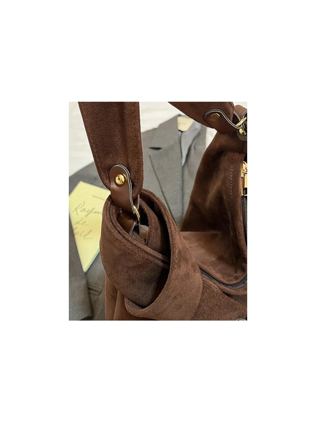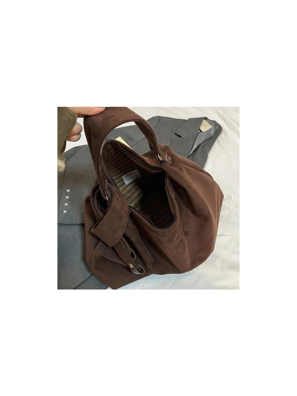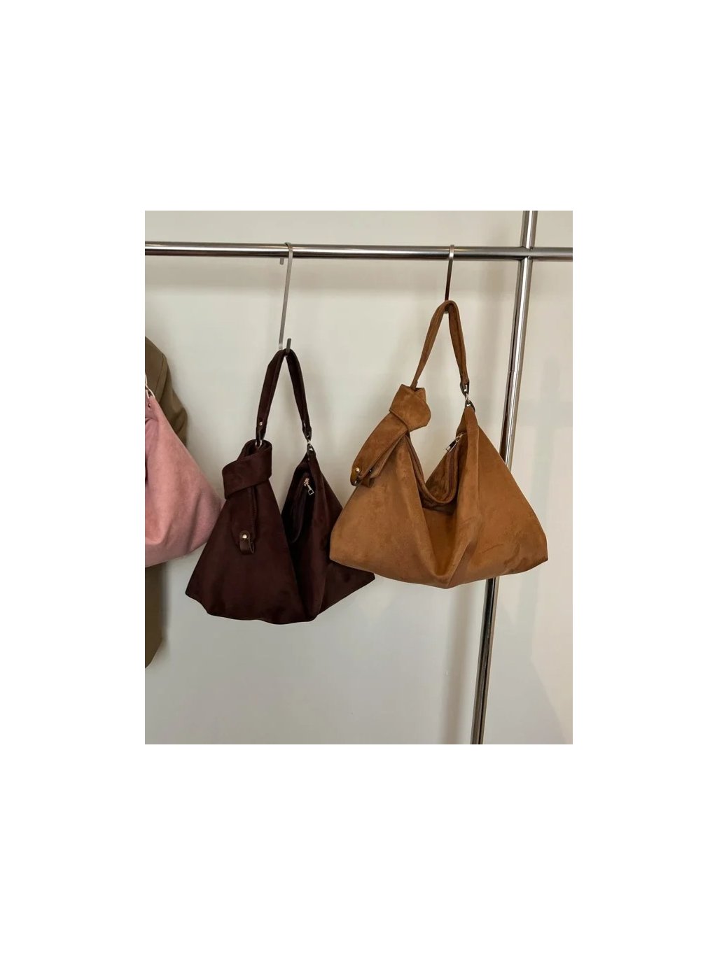 Semišová kabelka z mäkkeho materialu. Kabelka je na rameno a je na zips.