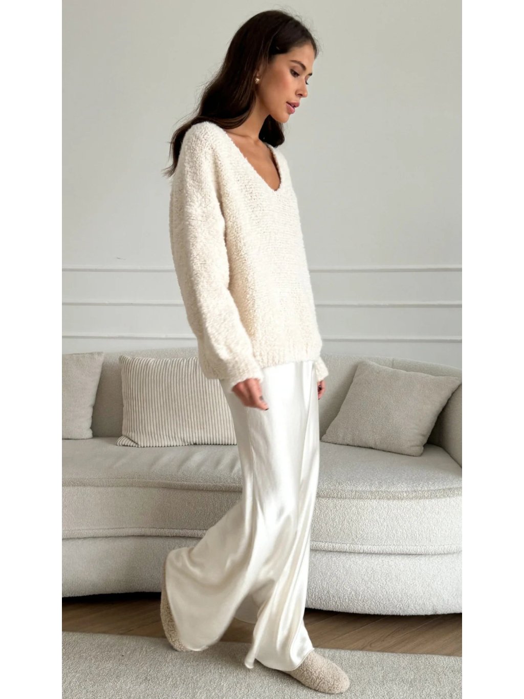 Zimný teplý svetrik fluffy z hunateho naterialu. Neskriabe. Vystrih do V. Rukavy su 3/4.