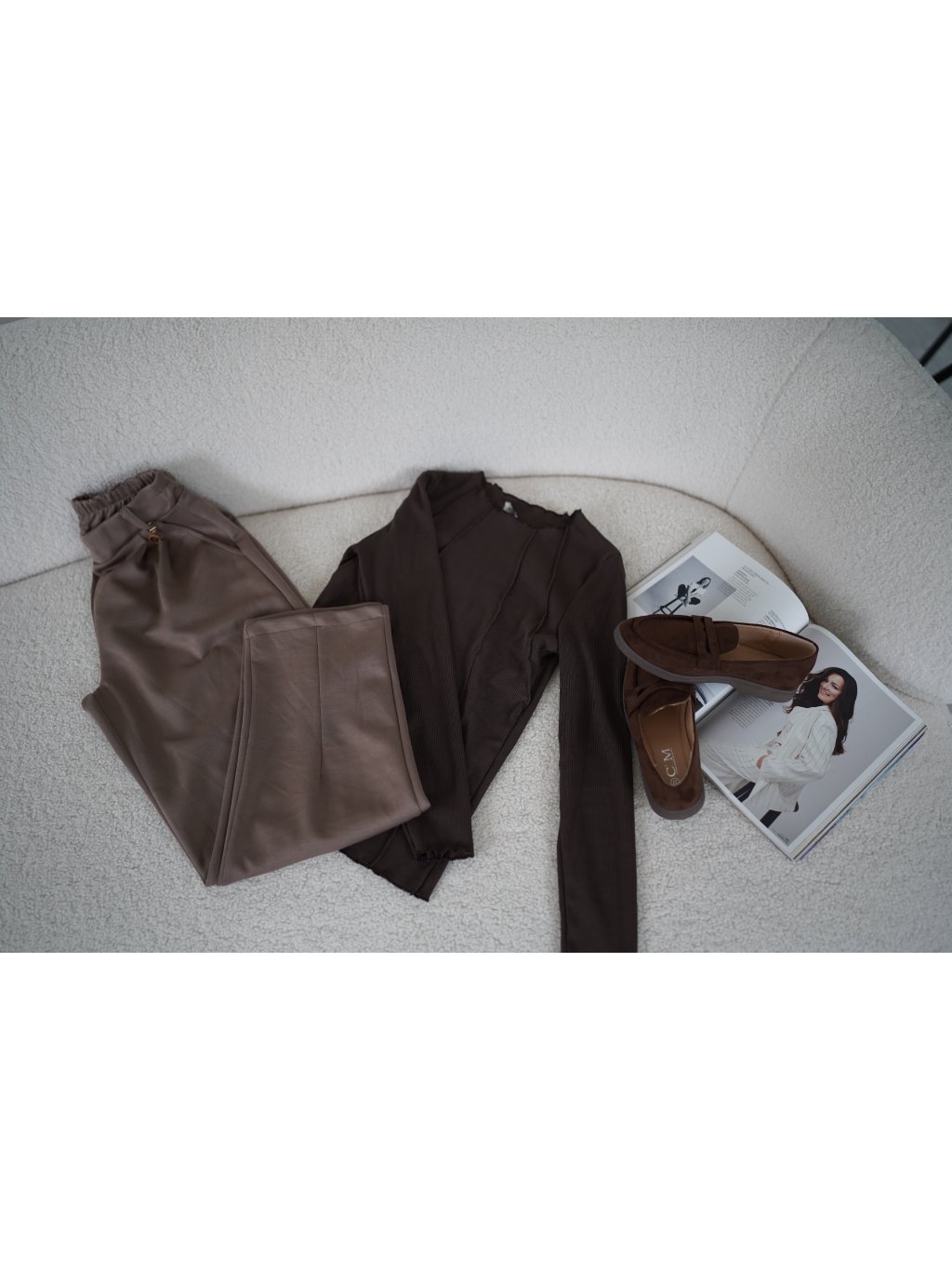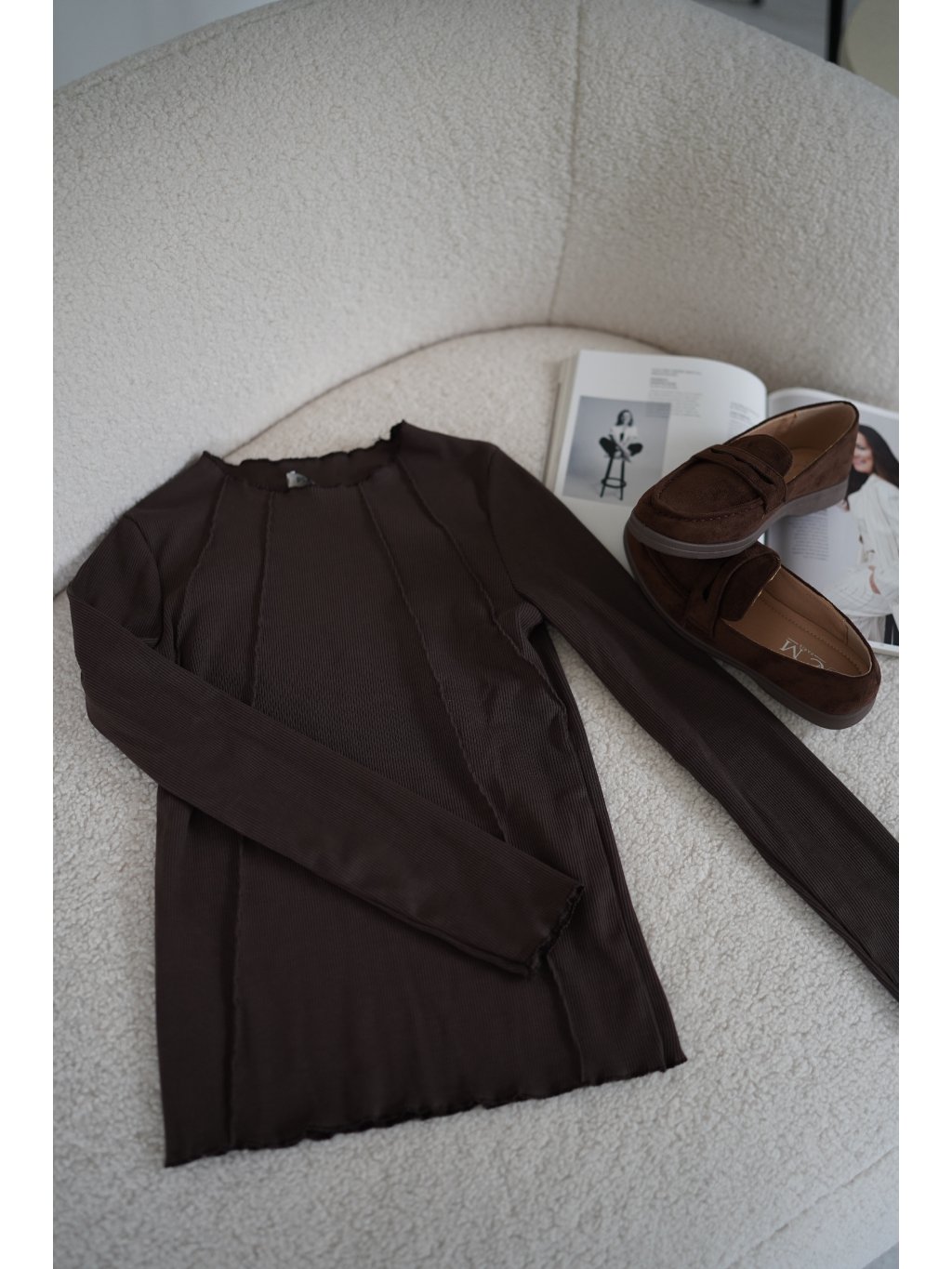 Rebrovany bavlneny top v čokoladovej farbe. Sedi iba na velkosť XS/S/M je elastický.